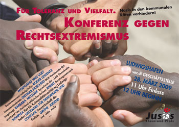 Rechtsextremismus ist schon lange kein „Ostproblem“ mehr, wenn er es denn jemals war! In zahlreichen kommunalen Räten in Deutschland, auch in Rheinland-Pfalz ist es rechten und rechtsextremen Parteien gelungen, beträchtliche WählerInnenzahlen zu mobilisieren. So sitzen etwa in Mainz, Pirmasens oder Ludwigshafen die Republikaner im Stadtrat und versuchen, dort das politische Geschehen mitzubestimmen. Für 2008 wird ein Höchststand an rechtsextremen Straftaten prognostiziert. In diesem Jahr finden in RLP Kommunalwahlen statt, bei denen es erstmals keine prozentuale Hürde für den Einzug von Parteien in die Räte geben wird – demokratische Kräfte müssen deswegen noch stärker mobilisiert werden, um die Rechten rauszuhalten. Mit dieser Konferenz wollen wir in Ludwigshafen ein weiteres Zeichen gegen Rechtsextremismus setzen.
