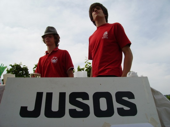 Hainfeld, 31.August 2008. Auf dem diesjährigen Weinstraßentag waren auch wieder die Jusos Südliche Weinstraße am "roten Eck" in Hainfeld vertreten. Neben verschiedenen Getränken und Cocktails wurden Flammkuchen aus dem Holzofen an die Leute gebracht.
